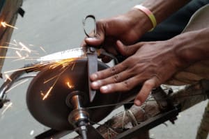 Mit einem Scherenschärfer werden die Scherenklingen geschärft. Einfach die Schere durch ein paar leichte Schneidebewegungen im Scherenschärfer schärfen und die Klingen sind wieder scharf.