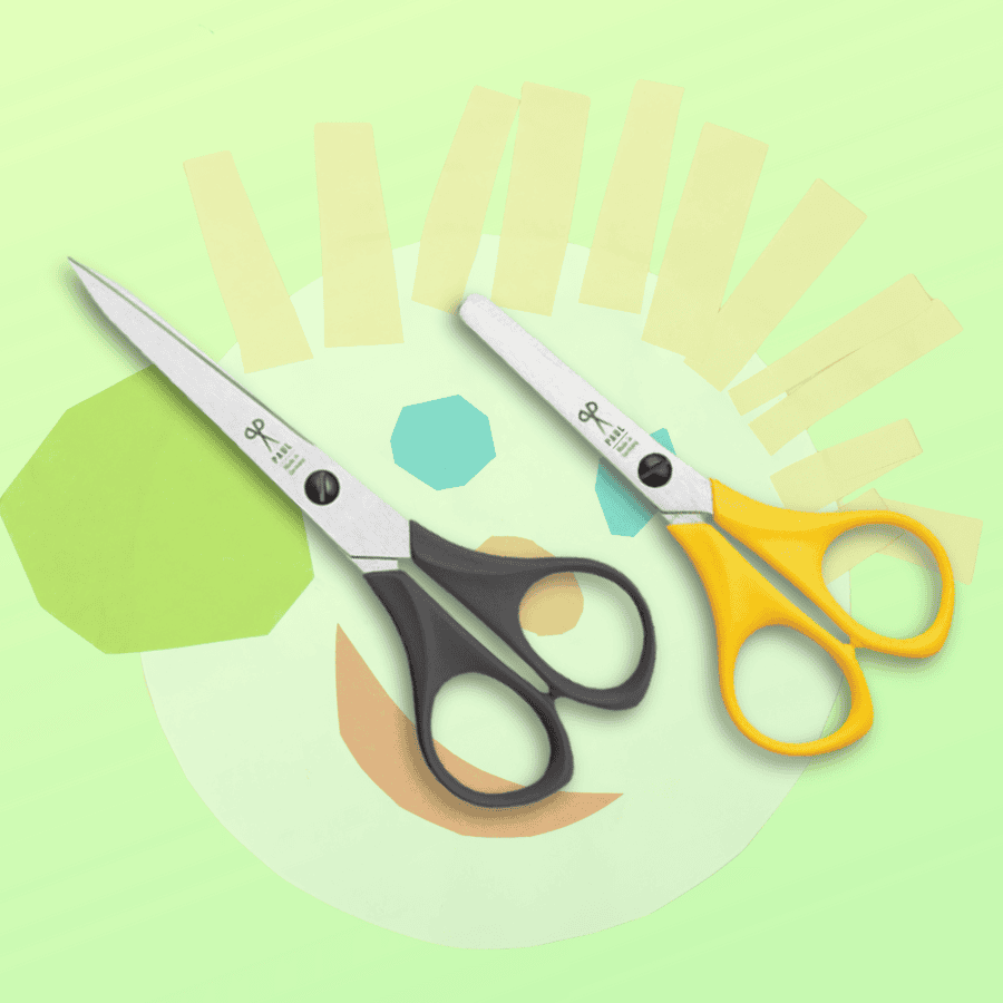Das Scherenset besteht aus einer gelben Kinderschere und einer Bastelschere