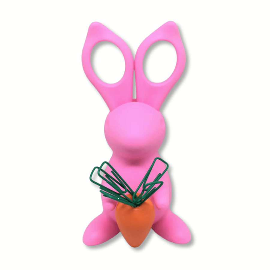 Dieser Scherenhalter Hase ist nicht nur eine praktische Aufbewahrung, sondern auch ein echter Blickfang auf dem Schreibtisch. Das Besondere an diesem Set: Die passende Schere ist bereits enthalten und bildet gleichzeitig die Ohren des Hasen. Steckt die Schere im Halter, entsteht die vollständige Hasenfigur – eine originelle und zugleich funktionale Idee.
